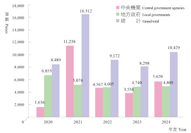 > 最近五年各級政府機關撥用國有土地統計圖
