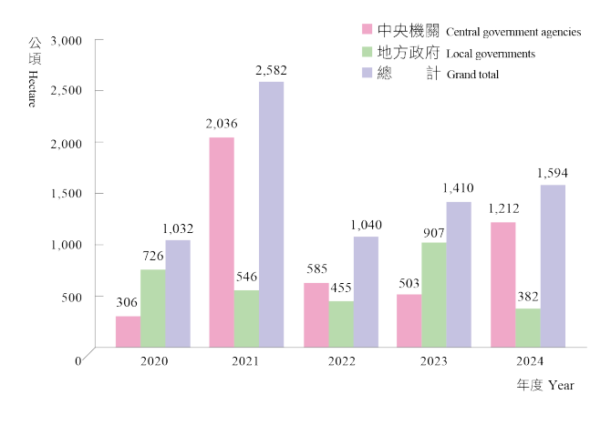 最近五年各級政府機關撥用國有土地面積