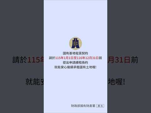 國有基地租賃契約請於115年1月1日至116年12月31日前提出申請續租換約喔❗